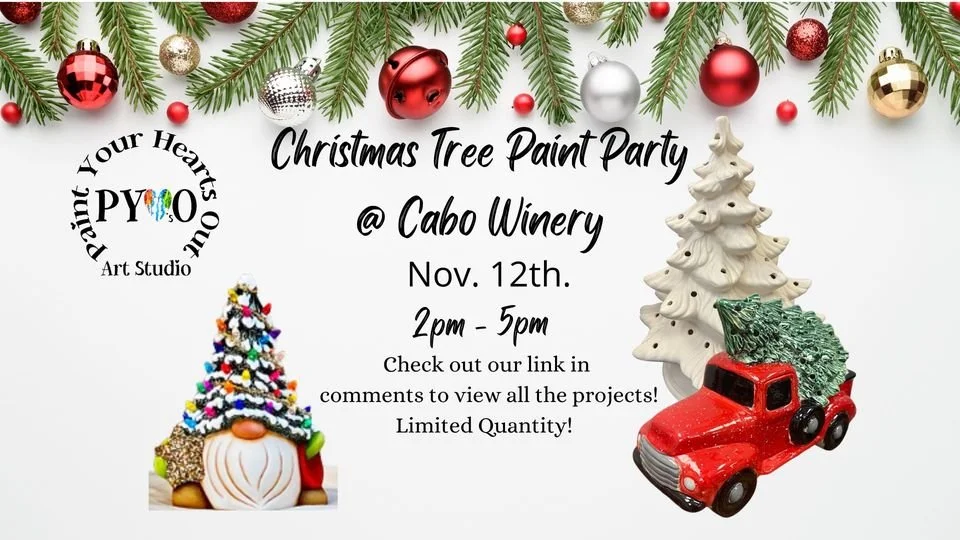 Come paint a Christmas Ceramic with us on Sunday Nov 12th 2pm - 5pm Painted with Acrylic paints, Take your project home same day.