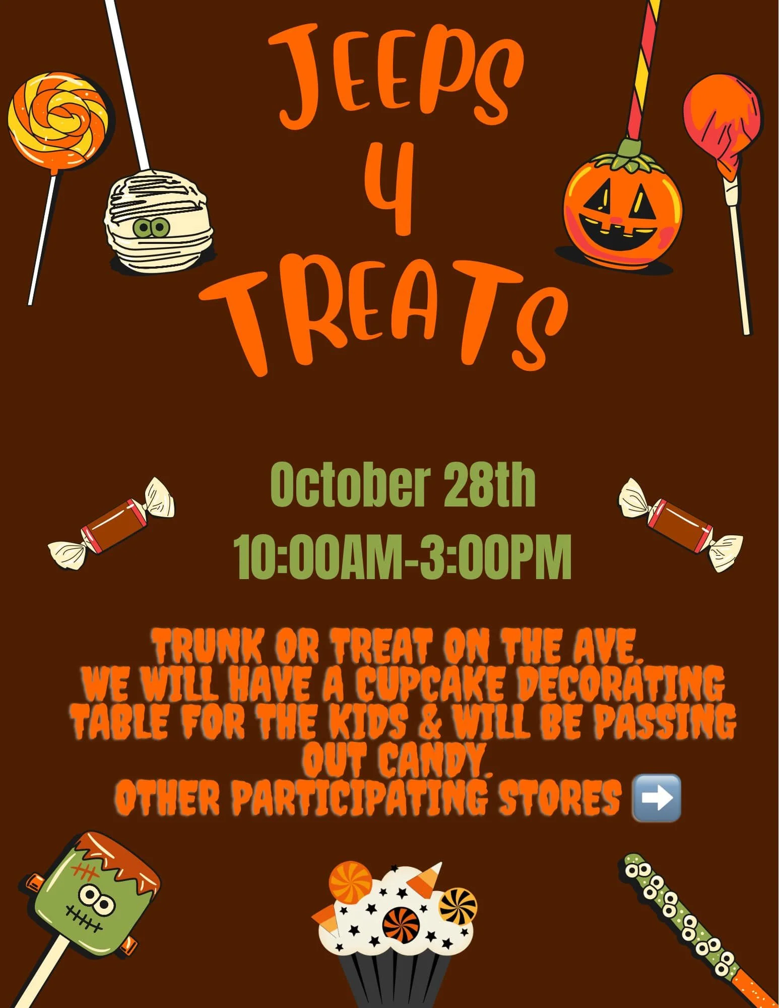 Trunk or Treat with cupcake decoration stations along with candy and other participating stores!